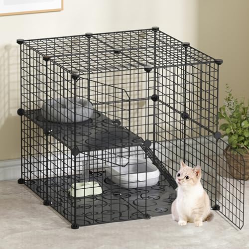 BNOSDM Cat Cage Indoor, Detachable 2 Tier Metal Small Animal Cage DIY Design Kitten Playpen Kennels for Small Pet Cat Puppy, Black 【Extra Large Space】