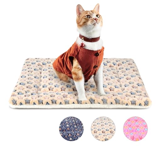 MORA PETS Cat Bed for Indoor Cats Washable Flat Kitten Bed Blanket Soft Warm Pet Pad for 18 inch Cage Small Dog Bed Mat Mattress Puppy Crate Pillow Reversible Extra Small 45x37cm Brown