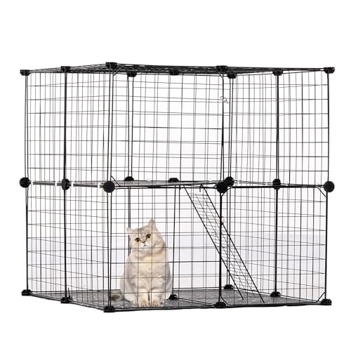 VEVOR Large 2-tier Cat Cage, 28 x 28 x 28", DIY Detachable Metal Wire Cat Enclosure, with Ramp Ladder Adjustable Resting Platform, Crate Large Indoor & Outdoor Exercise Place for Small Animals, Black