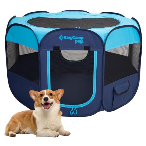 KingCamp Foldable Dog Playpen, Portable Pet Playpen with Breathable Mesh, Lightweight Pop Up Dog Cat Playpen, Dog Pen Pet Cage with Carrying Bag for Puppy Kitten Rabbit Indoor Outdoor, Blue S