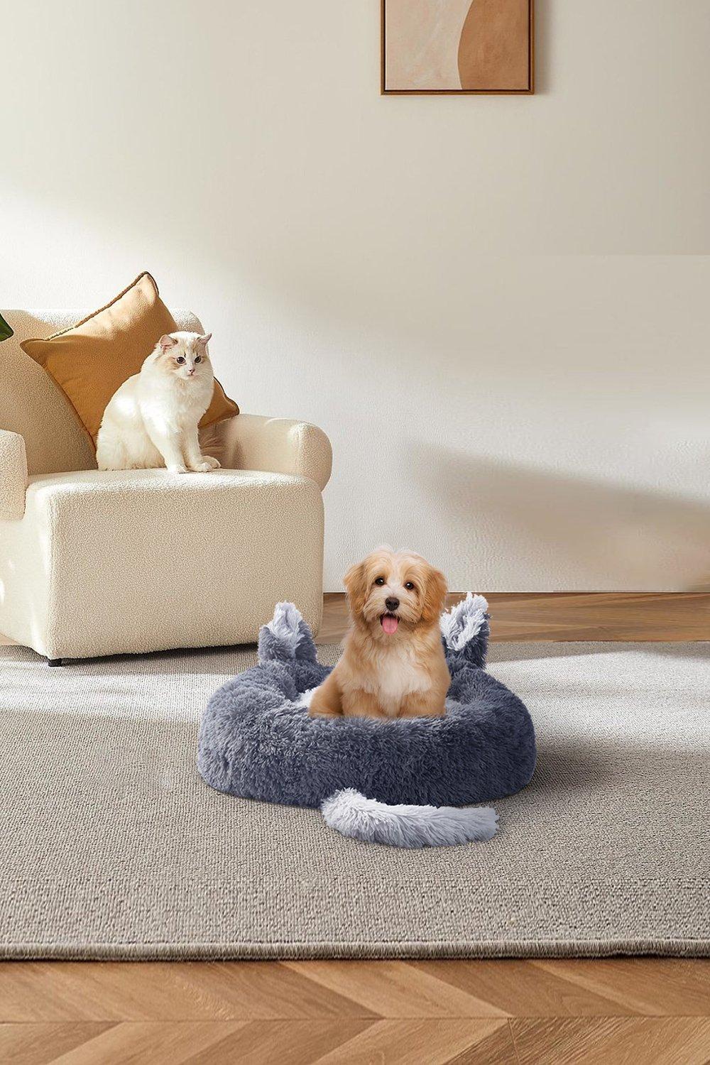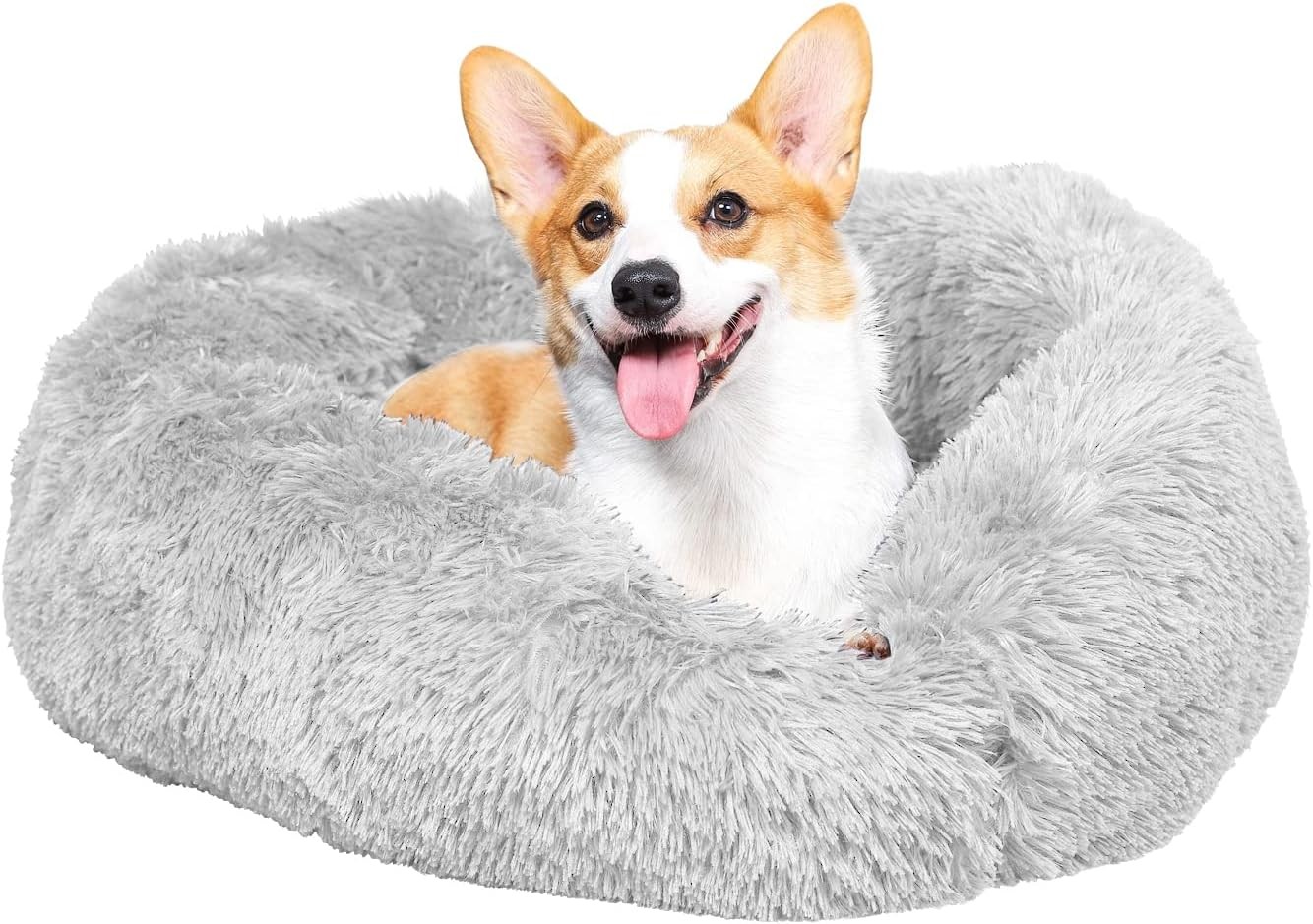 GONICVIN Donut Dog Bed, Fluffy Cat Bed, Calming Pet Bed, Cosy Anti Anxiety Beds