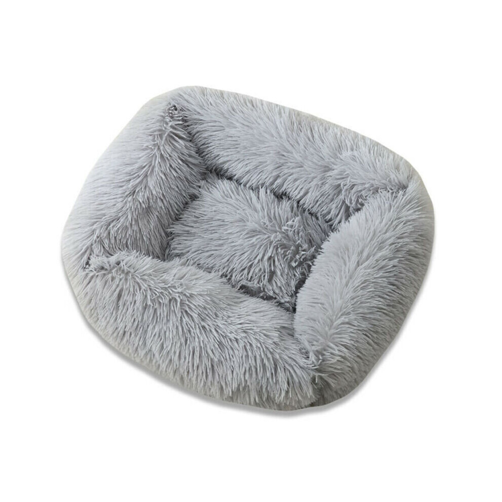 (Light Grey, S) Pet Dog Cat Calming Bed Comfy Shag Warm Fluffy Bed Nest Mattress Faux Fur Pad