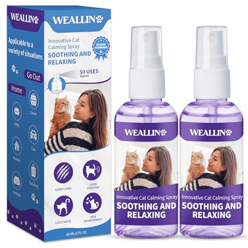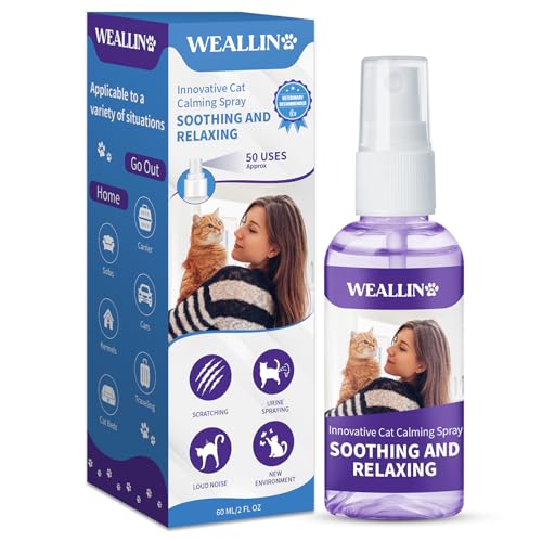 WEALLIN Cat Calming Spray - Calming Pheromone Relieve Anxiety & Stress and Other Problematic Behaviors Cat Facial Pheromone Calming and Relaxing Effect Suitable for Home Travelling Outdoor 60ml