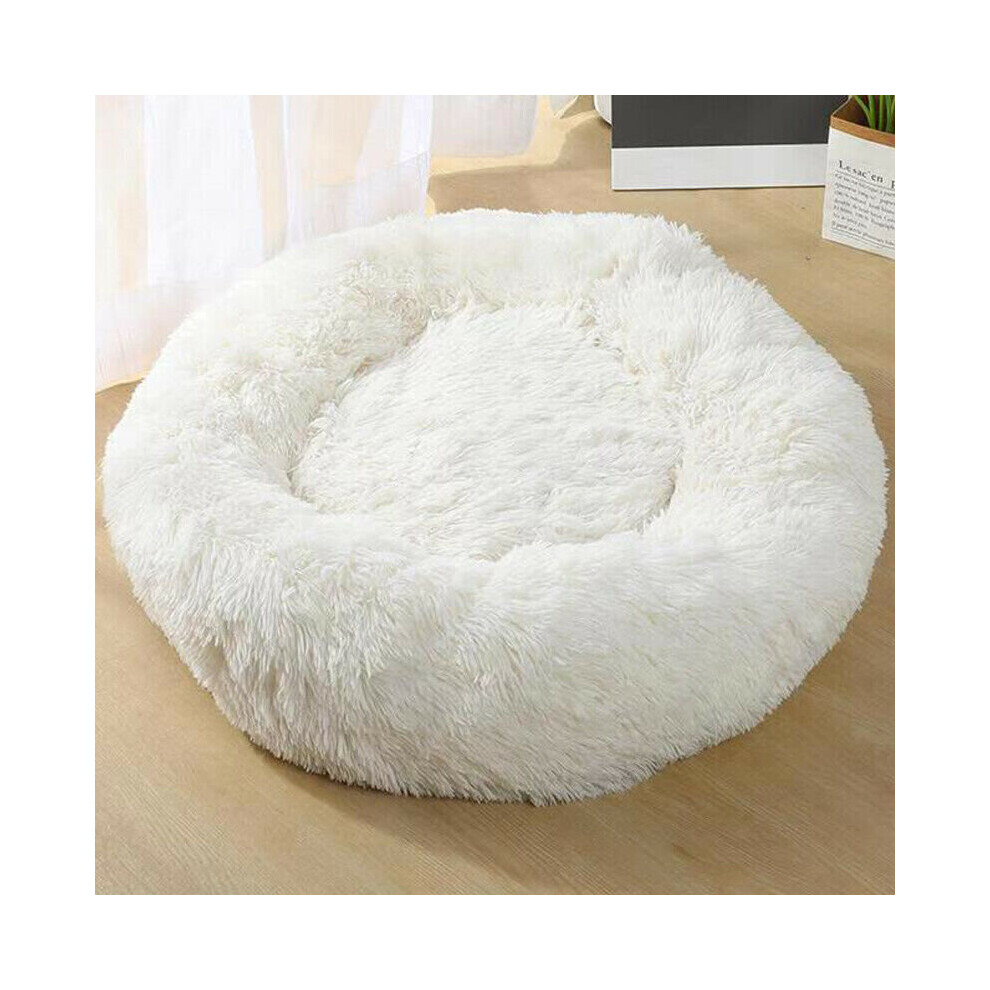 (White, 60cm) Pet Cat Dog Calming Beds Nest Warm Fluffy Plush Comfy Soft Mattress Donut Pads
