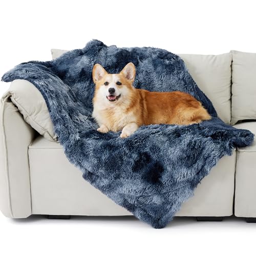 Bedsure Waterproof Dog Blankets Medium - 80x100cm Dog Blankets Washable for Medium Dogs, Fluffy Pet Throw Blanket for Sofa Bed Protector, Calming Cat Blanket, Tie-dye Navy