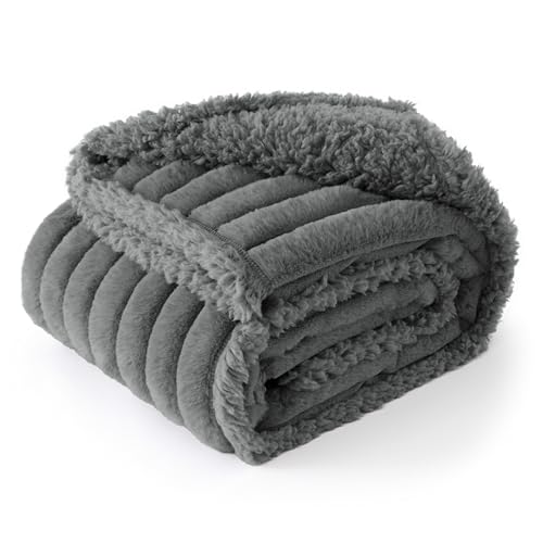Bedsure Large Dog Blankets Washable - 152x127cm Soft Fluffy Puppy Blanket for Kids and Large Dogs, Cosy Calming Cat Blanket for Indoor Cats, Fleece Dog Bed Blankets, Pet throws for Sofa, Dark Grey