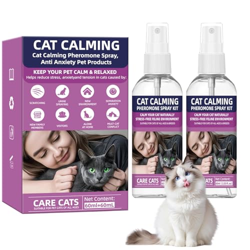 KODASNY Cat Calming Spray Cat Calming Pheromone Spray Kit Feline Calm Pheromones Vet Recommended Drug-Free Anxiety Relief for Multi-Cat Homes,Stops Scratching & Urine Marking,60-Day 2 * 60 mL