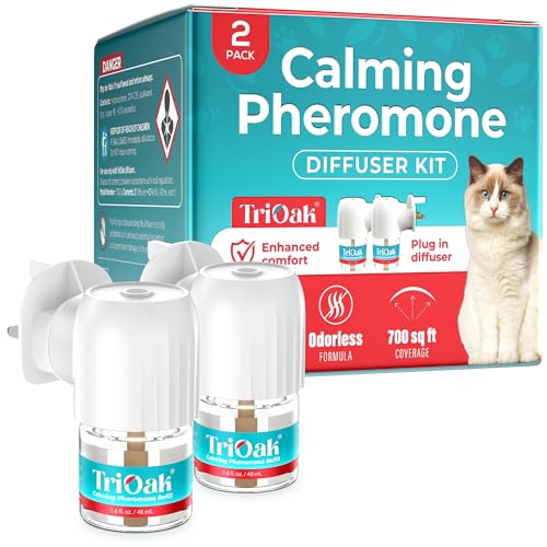 TriOak Cat Calming Plug-in: Cat Pheromone Diffuser - Cat Plug In Calmer - Advanced Pheromone Calming Aid for Cats – Relaxation & Comfort, 2 Pack (Light Blue)