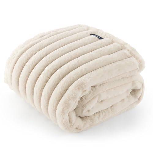 Bedsure Large Dog Blankets Washable - 152x127cm Soft Fluffy Puppy Blanket for Kids and Large Dogs, Cosy Calming Cat Blanket for Indoor Cats, Fleece Dog Bed Blankets, Pet throws for Sofa, Cream