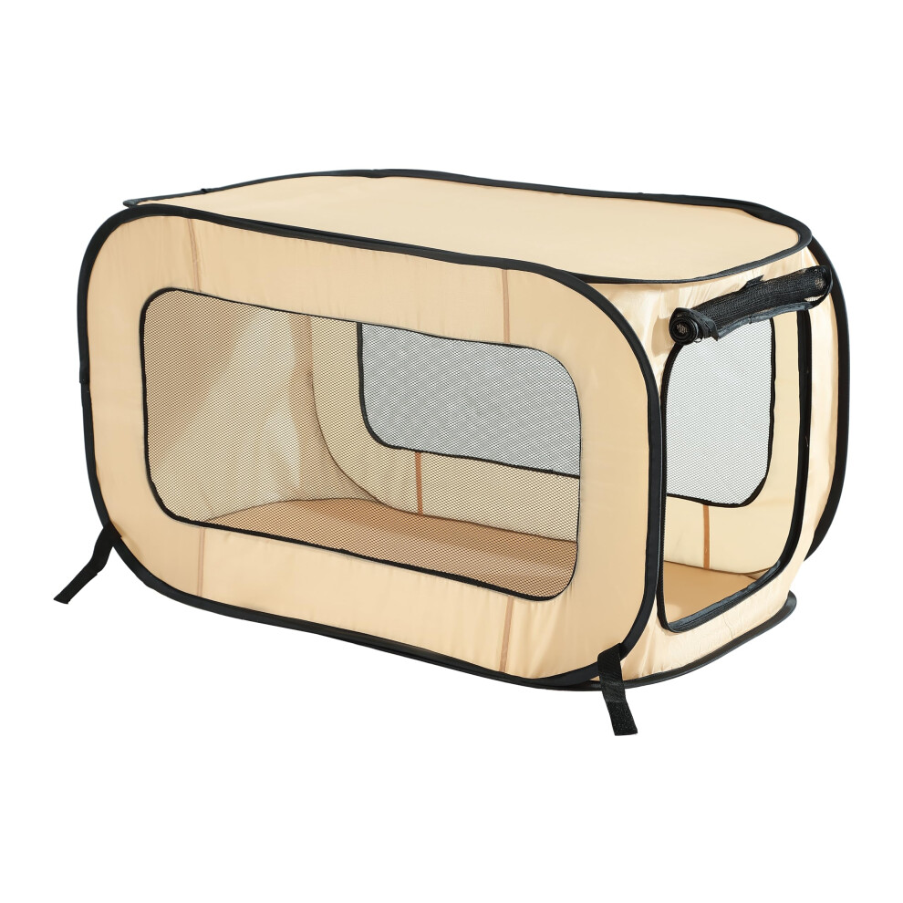 Beatrice Home Fashions Portable Collapsible Pop Up Kennel Travel Cat and Dog Crate 40"""" L x 27"""" W x 27"""" H Beige