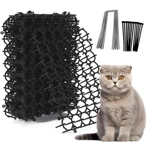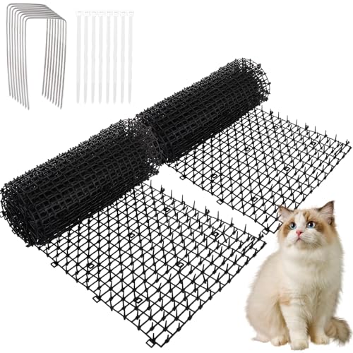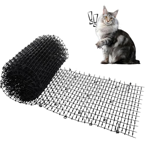 Oungy Anti Cat Spikes, 400x30cm Plastic Cat Scat Mat with Spikes, Anti Cat Spikes Pet Deterrent Net for Garden, Outdoor (Black)