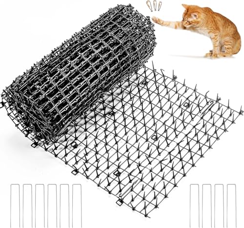 400x30CM Extra Long Cat Scat Mat with Spikes Anti Cat Spikes Prickle Strips Cat Deterrent Spikes Cat Spikes for Garden Spike Deterrent Mat Includes 14 Garden Staples