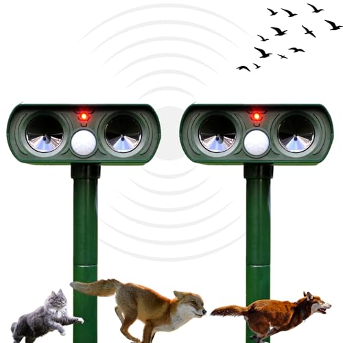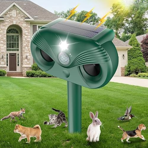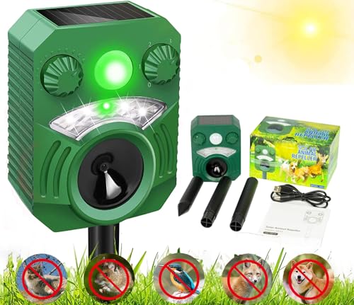 Solar Powered Cat & Pest Deterrent â Ultrasonic/Sonic Repeller with LED Strobe, IR Motion Sensor, Weatherproof for Garden & Farm