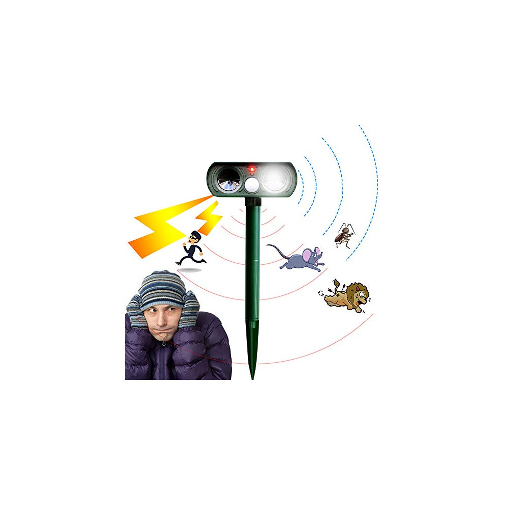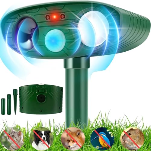 Ultrasonic Solar Cat Repellent, Animal Repellent for Gardens Mole Cat Deterrent with LED Flash Light, Cats Scarers for Gardens Outdoor IPX4 Waterproof for Garden Yard Bird fox
