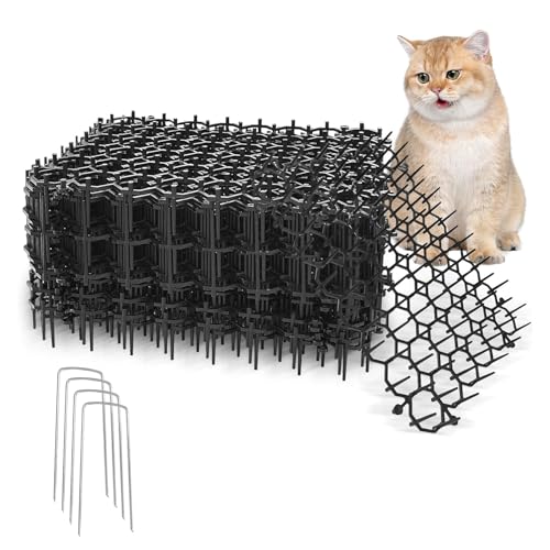 Cat Deterrents for Gardens,12PCS 20 * 15.5cm Anti Cat Spikes Cat Repellent Scat Mat with 12 Garden Staples Cat Deterrent Spikes for Garden Fence Lawn Animal Barrier (12)