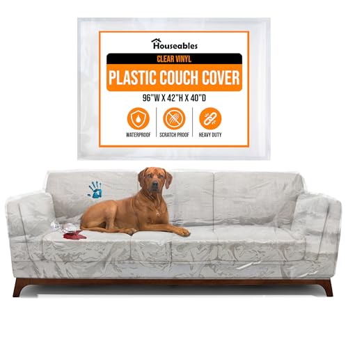 Houseables Couch Covers For Dogs, Cat Scratch Deterrent, 96"W x 42"H x 40"D, 1 Pk, Clear, Vinyl, Sofa Protector, Waterproof Shield, Furniture Protectors, Plastic Slipcovers, Dog, Pet, Cats Pee, Moving
