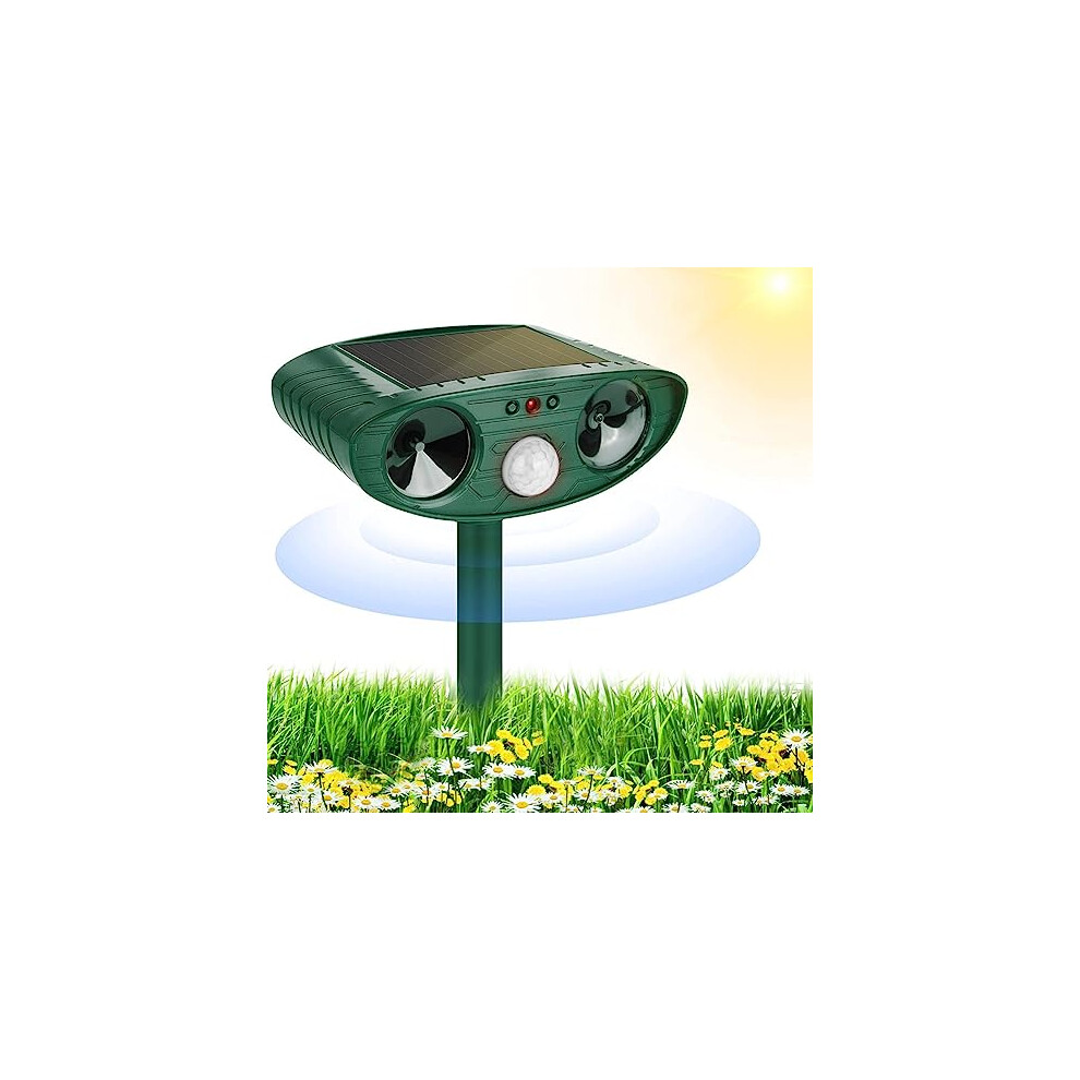 Solar Cat Repellent for Gardens UK, Ultrasonic Animal Repeller, Waterproof Cat Deterrent with PIR Motion Sensor,4 Modes, Effective for Squirrel, Dog, Cat, Fox, Bird Etc (Dark Green)