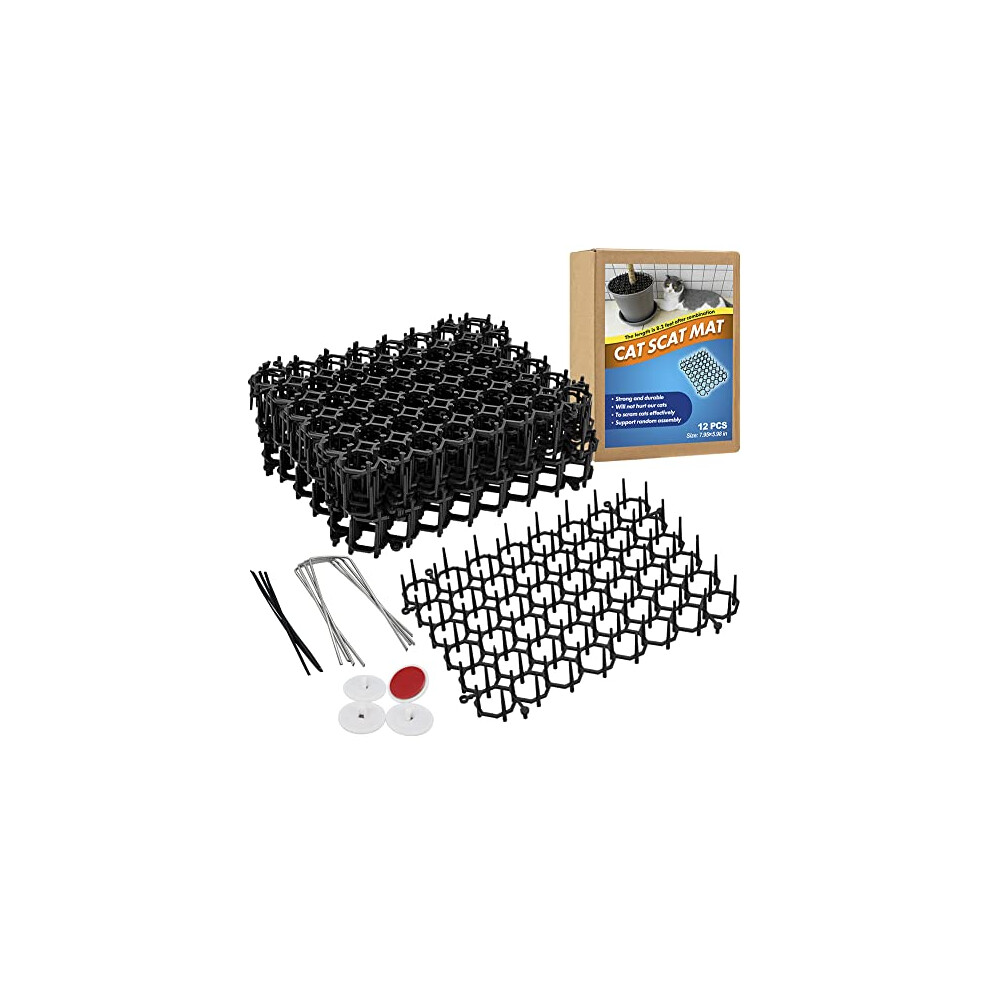 12pcs Cat Scat Mat with Spikes Prickle Strip Dig Stopper, Scat Mats, Anti Cat Indoor Cat Deterrent Outdoor Mat for Garden