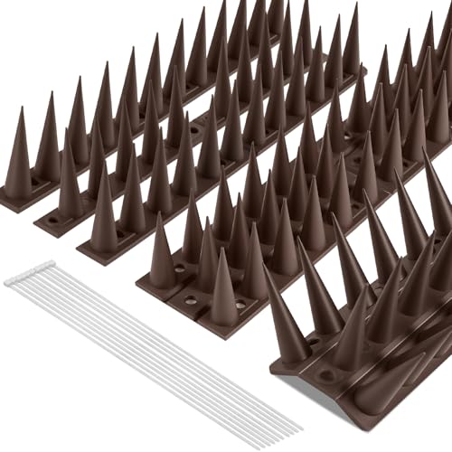 Apluskis Upgraded Bird Spikes, 20 Pack/6M Bird Squirrel Raccoon Pigeon Cat Fox Animal Deterrent Spikes Fence Spikes for Outside Anti Bird Spikes Outdoor to Keep Birds Away (Brown)