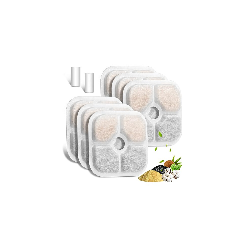 Cat Water Fountain Filters, 6 Pack Triple Action Water Fountain Filters, Replacement Cat Drinking Fountain Filters, Activated Carbon Filter Compatible with 3L Flower Pet Water Dispenser Fountain