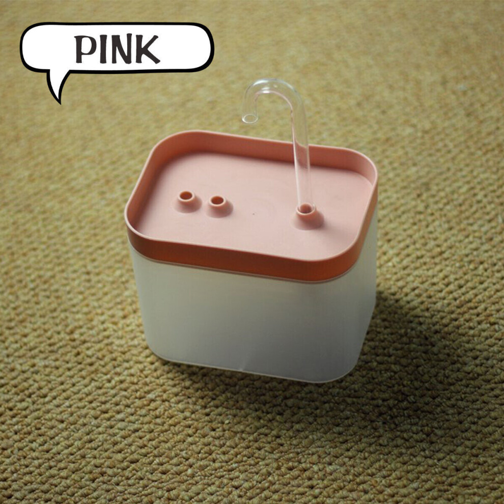 (Pink white) 1.5L Pet dog Cat Water Fountain Drinking Electric Dispenser Drinker Pet Feeder