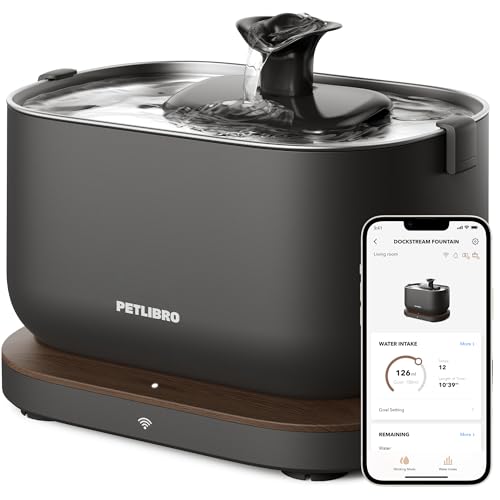 PETLIBRO Smart Cat Water Fountain with WiFi, Logs Cat Drinking Time and ml Amount, Water Intake Tracker, Dockstream App Monitoring Pet Dispenser, Plug-in Power Supply Required