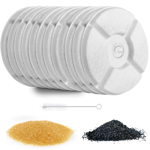 Cat Water Fountain Filters 10 Pack, Yiupea Cat Filters Replacement Suitable for 2L/2.5L Cat Drinking Fountain,Cotton Activated Carbon & Resine with