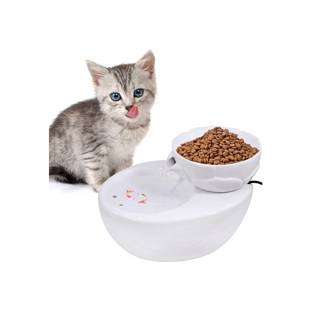 Wistwoxxon Cat Water Fountain, 50 oz Cat Drinking Fountain Ceramic with Food Feeder, Cat/Dog Water Dispenser (White)