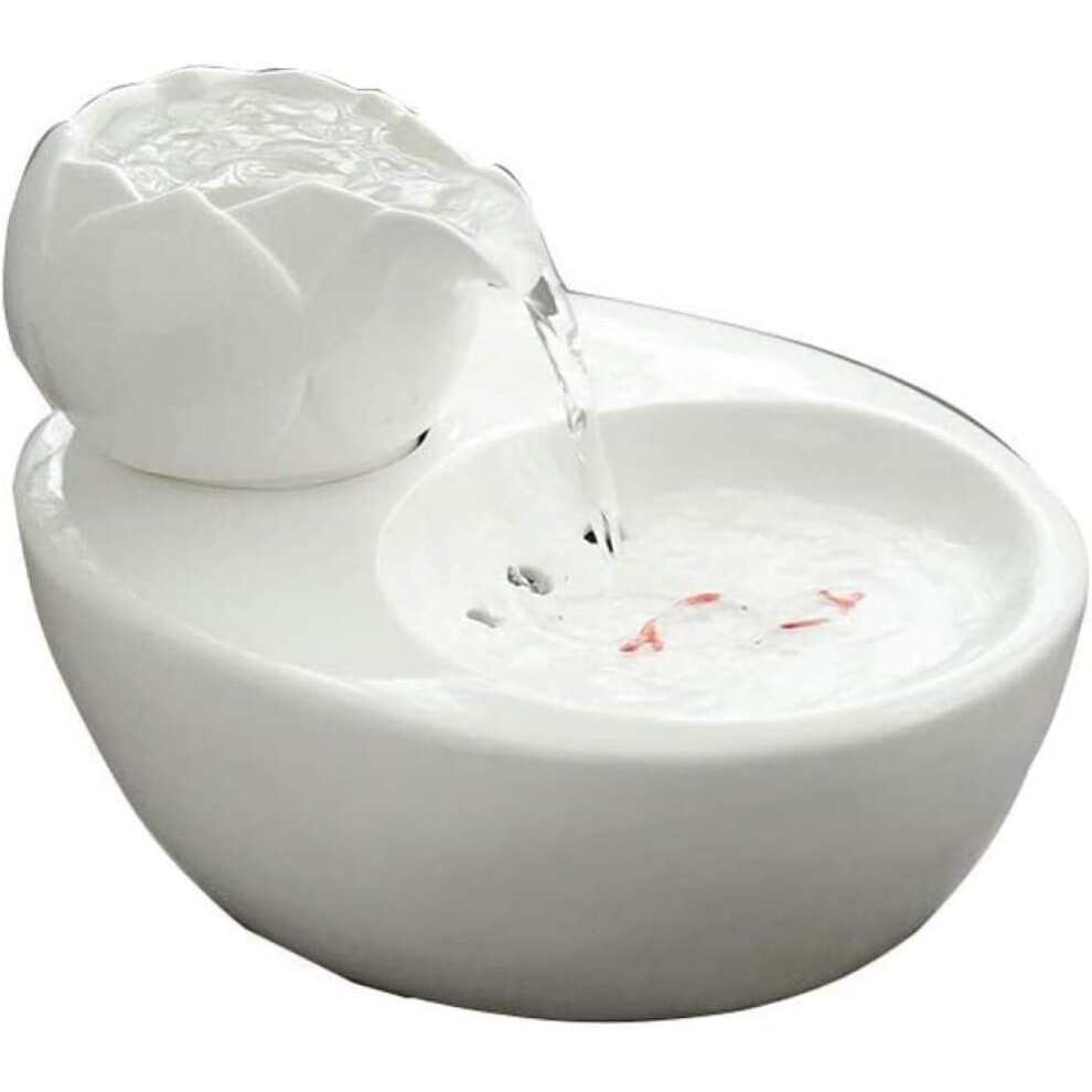 Cat Fountain Ceramic Pet Water Dispenser - Lotus Vertical Cat Drinking Fountain
