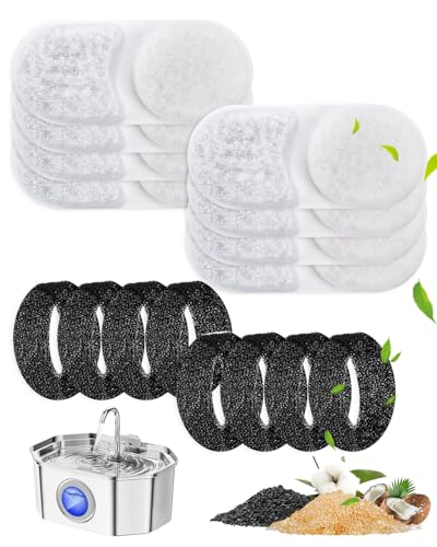 ZaKaBox 16Pcs Cat Water Fountain Filters for APAUK 3.2L Cat water Fountain for Drinking, Activated 8 Carbon & 8 Sponge Filter