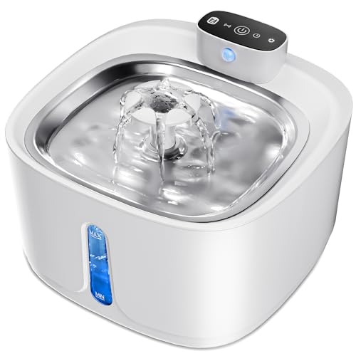 Cat Water Fountain for Drinking: Stainless Steel Cat Fountain - 2.6L Water Fountains Cats Bowl automatic - Silent Pet Water Fountain Indoor - Pet Drinking Fountain with Visible Water Level Window