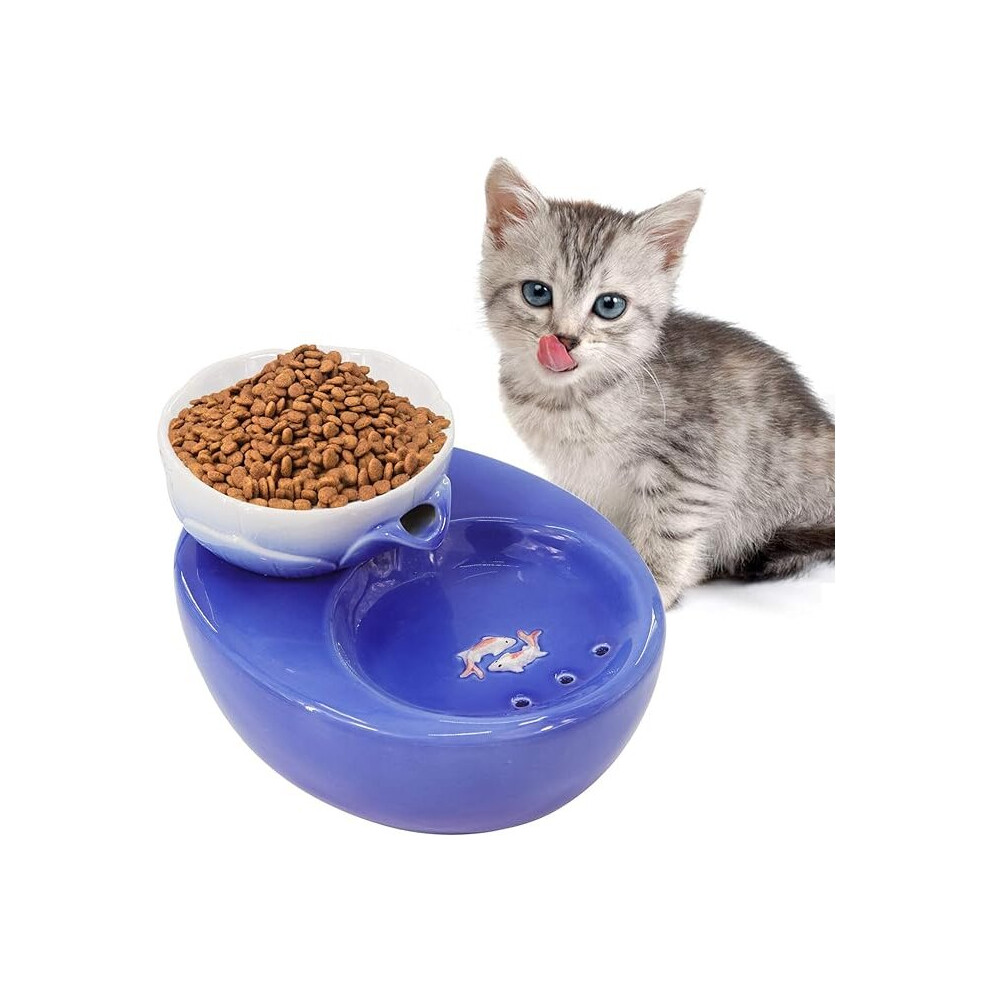 Wistwoxxon Cat Water Fountain, 50 oz Cat Drinking Fountain Ceramic with Food Feeder, Cat/Dog Water Dispenser (Blue)