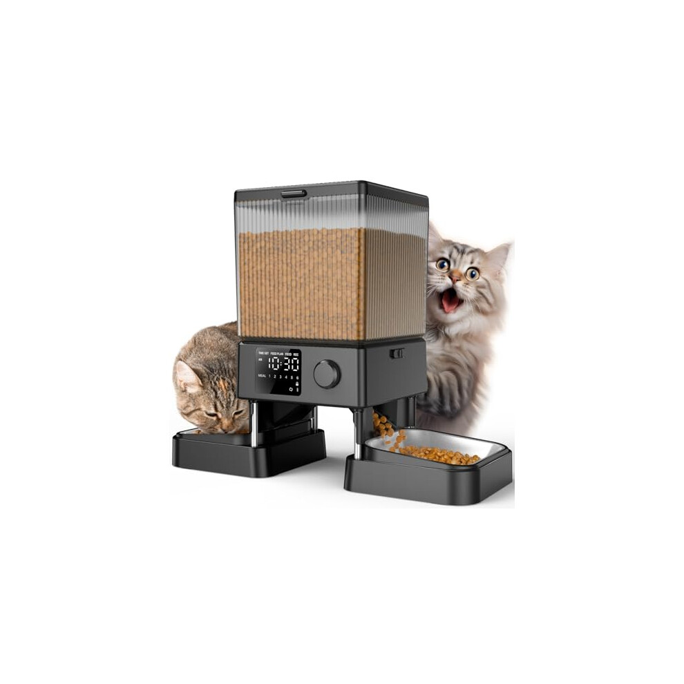 Voluas Automatic Cat Feeder for Two Cats Double Pet Feeder with 2 Stainless Steel Bowls 6L Timed Cat Feeders with Memory Function