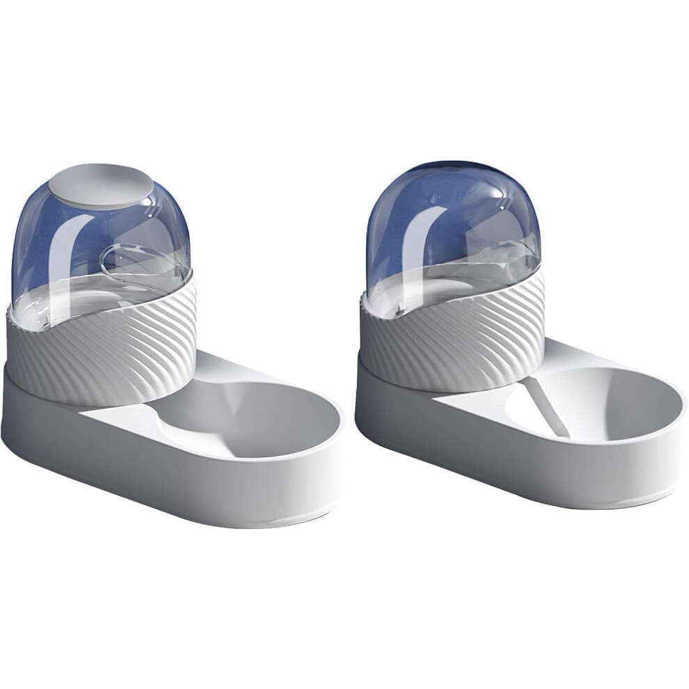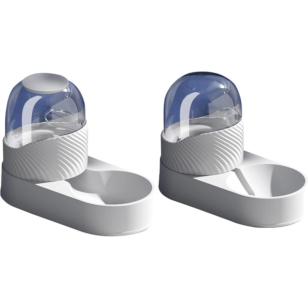 2 Pieces Automatic Dry Food and Water Dispenser for Cat Dog, 2-in-1 Set Feeders and Drinkers for Pets Capacity 2L (White)