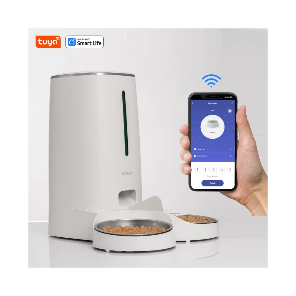 FUKUMARU Automatic Cat Feeder, 4L Dog Feeders with Double Bowls, Support DIY Meals and Timed Control WiFi Cat Food Dispenser