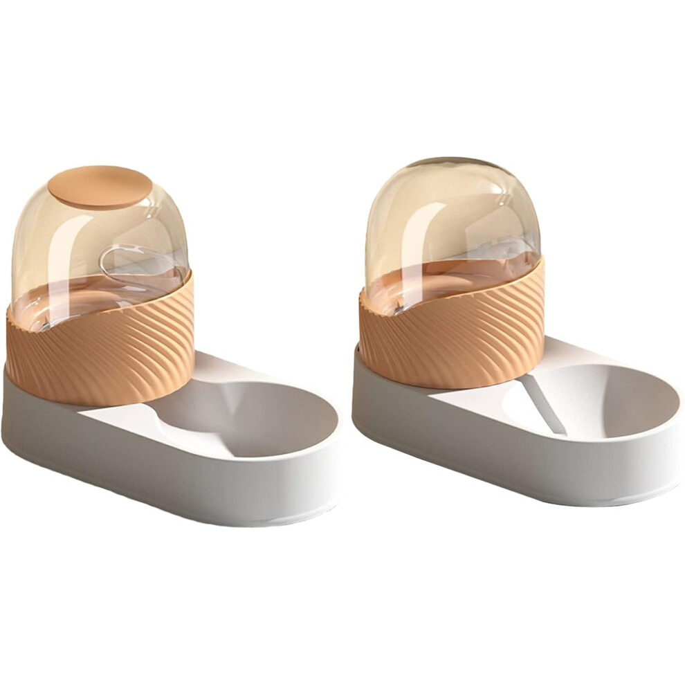 2 Pieces Automatic Food and Water Dispenser for Cat Dog, 2-in-1 Set Feeders and Drinkers for Pets Capacity 2L (Orange)