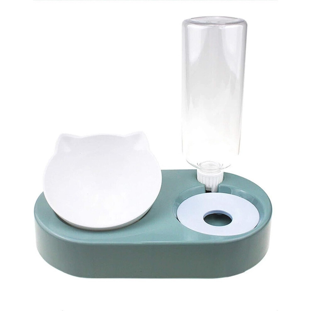 (Green) Automatic Feeders Cat Bowl Dog Water Feeder Bowl Cat Drinking Fountain Food Water Dispenser