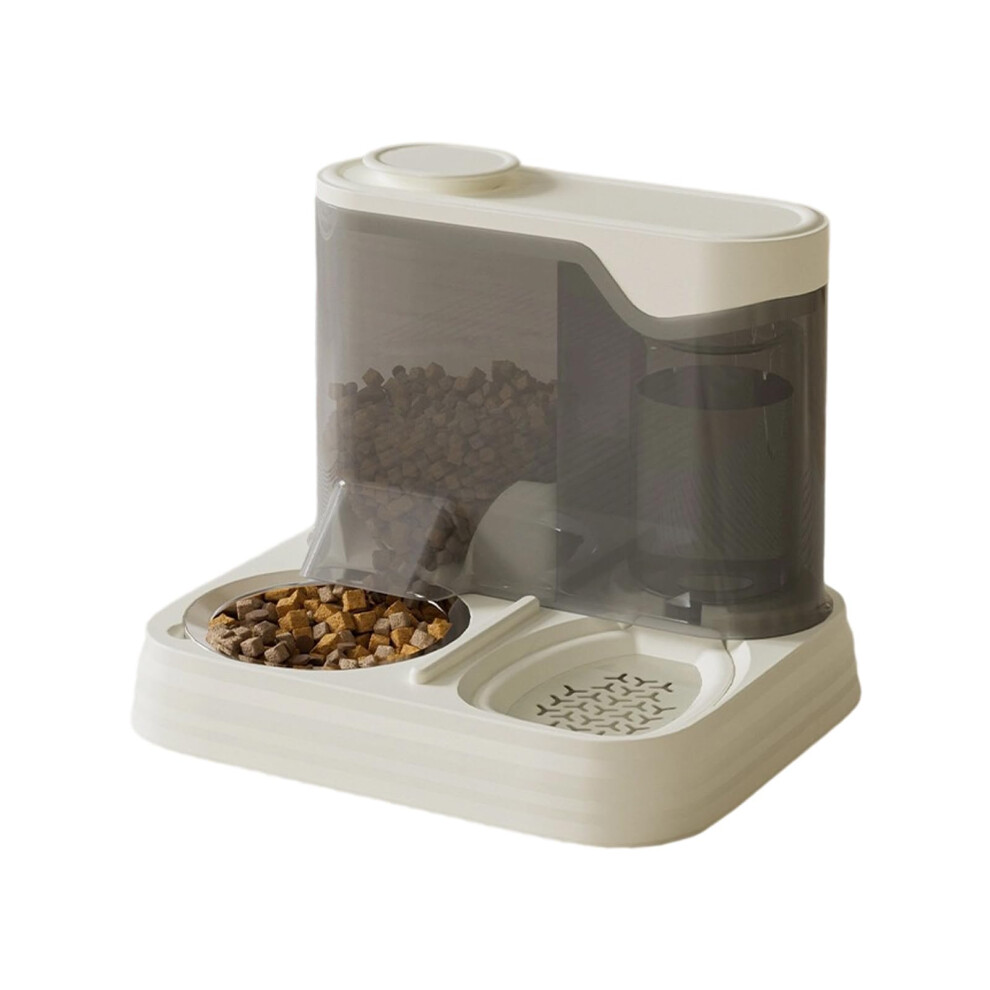 Dual Pet Feeder Bowl With Water Dispenser, Cat And Dog Feeding Station, Anti Spill, Easy Clean Basin, Beige