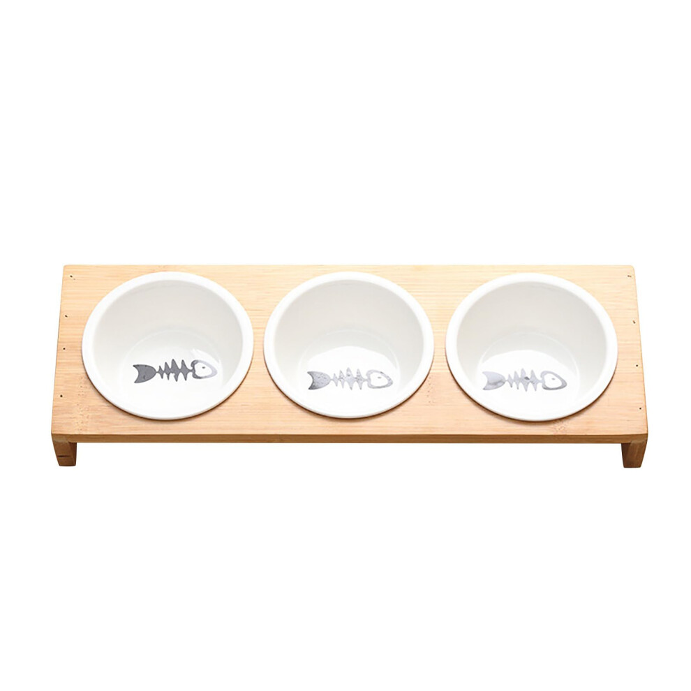 Otoomenz 3PCS Cat Bowl, Ceramic Cat Food Bowls With 15? Tilted Wood Stand,Raised Cat Bowls for Food and Water, Bamboo Cat Feeding Station with Cat