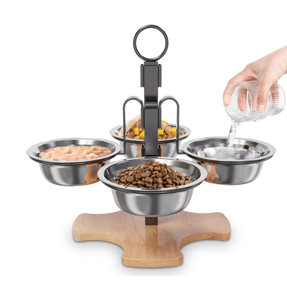 Optyuwah Raised Cat Bowls, Feeding Station, Set of 4 Bowls, Height-Adjustable, 5 Stainless Steel Bowls for Water, Food, Cats, Small Dogs