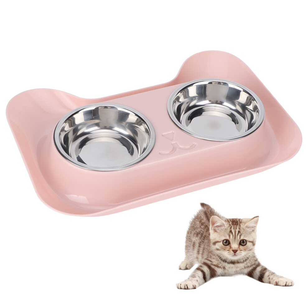 Cat Bowls Removable Feeding Station Large Capacity Stainless Steel Double Bowls For Food And Water Pink