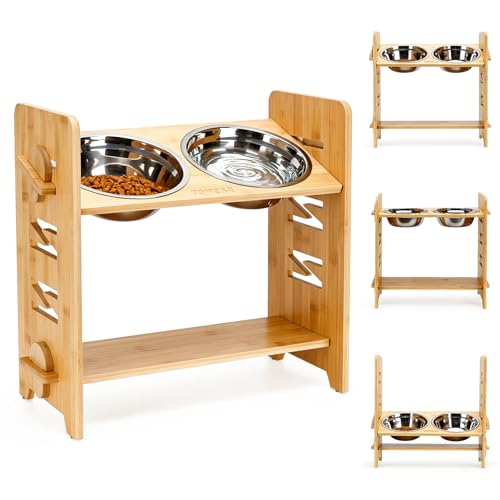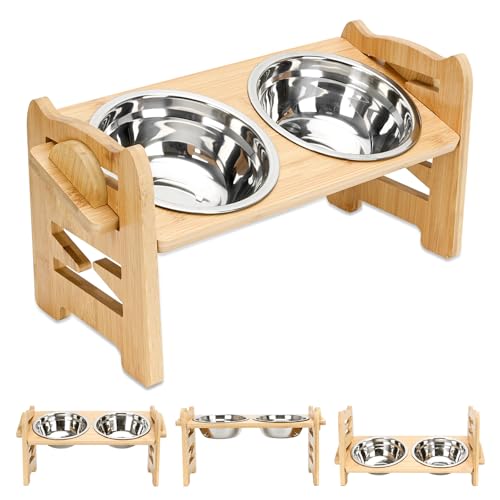 Raised dog Bowl, elevated dog bowls,6-Level Adjustable Raised, Bamboo Dog Feeding Station, 2 Stainless Steel Pet Bowl, dog bowls with stand for Dog and cat Raised Feeders(For small dog)