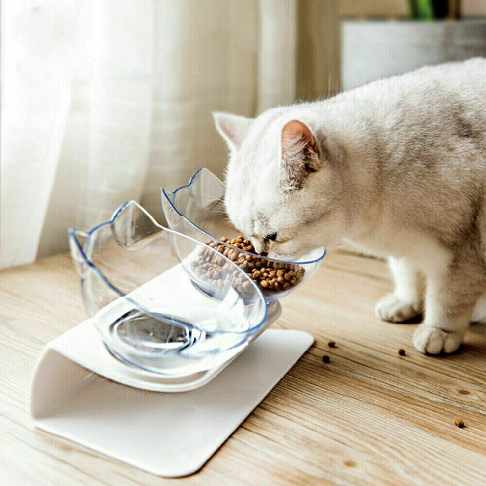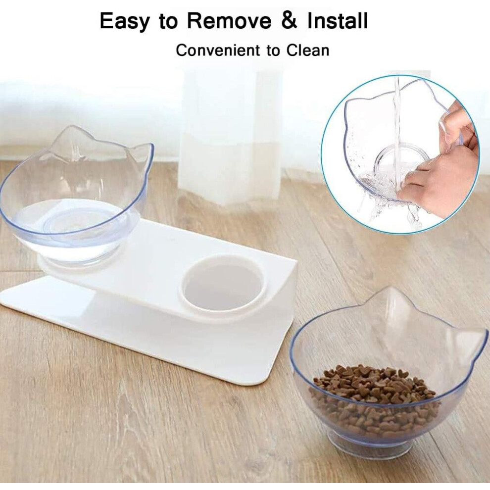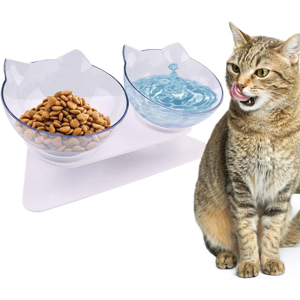 Elevated Cat Feeding Station, Transparent Cat Feeding Bowl with 15 Tilt Design for Neck Protection and Anti Vomiting, Quality Material BPA Free