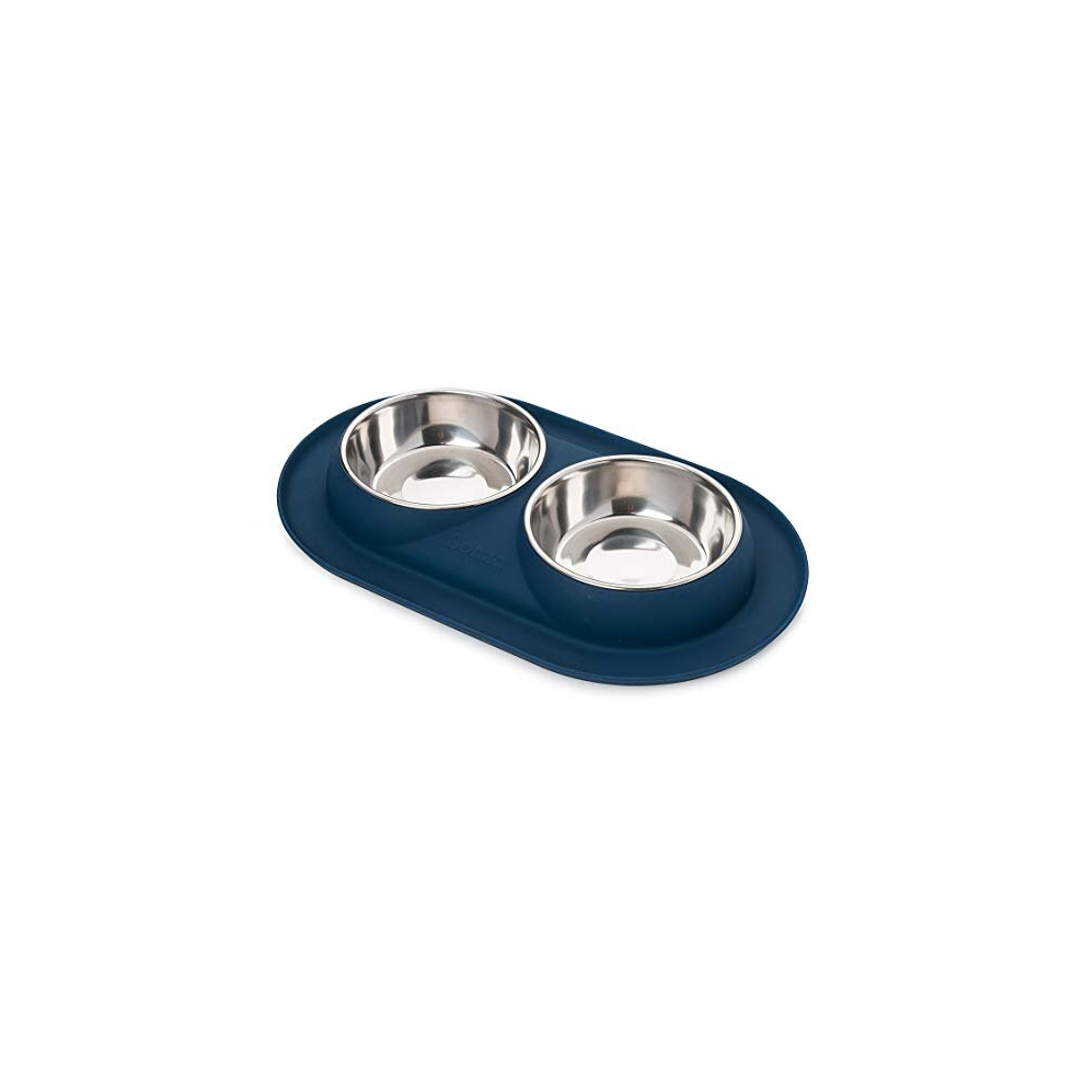 Bonza Double Cat Bowls Feeding Station, 400ml Premium Stainless Steel Dog and Cat Food or Water Bowls with Non-Spill Silicone Base, for Small Dogs and