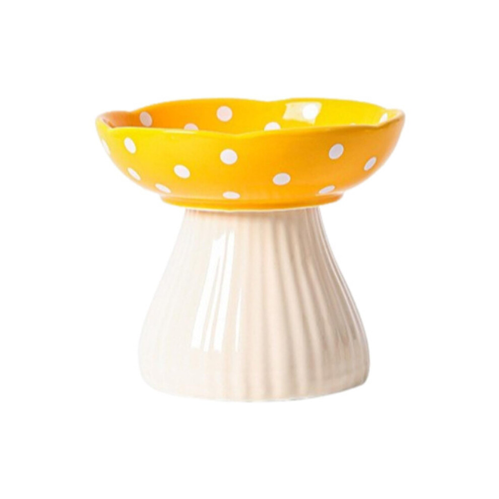 Elevated Mushroom Shape Cartoon Dish Cat Bowl Feeding Station Yellow Smooth Round Bowl For Comfortable Eating