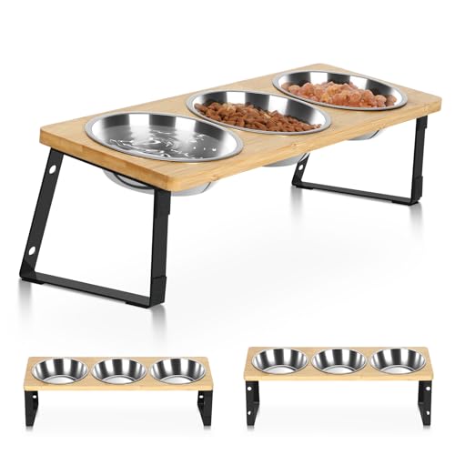 15° Tilted Cat Feeding Bowls, Triple Dog Bowl Stand, 3 in 1 Cat Bowls with Stand, Adjustable Height Elevated Feeder Bowls for Pets - Stainless Steel Kitten Puppy Dishes Feeding Station