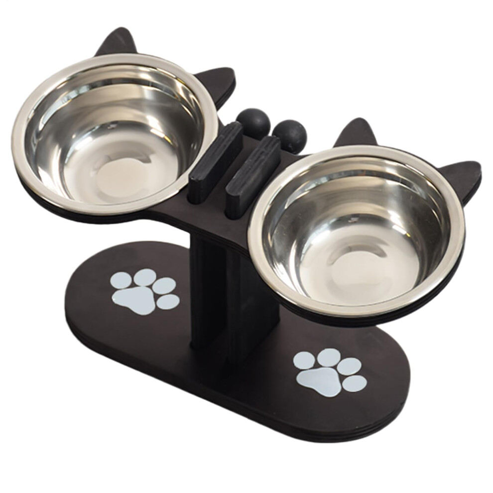 Cat Feeding Station - Non-Slip Adjustable Bowls, Pet Waterer, Indoor Outdoor Cat Feeder, Kitten And Senior, Black