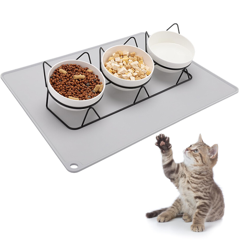 Cat Feeding Station with Elevated Bowls, Spill-Proof Design, Food Grade Material, Anti-Slip Mats Tray for Cats and Small Dogs