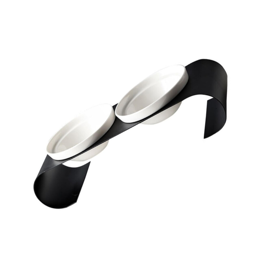 Elevated Pet Ceramic Feeder With Iron Rack Double Bowl Cat Feeding Station Black White