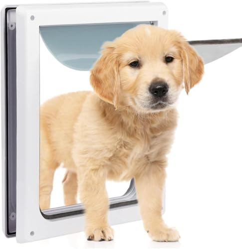 EALLC (L ( 25.5*23.5*5.5cm), White) 4 way Pet door Locking Small Medium Large Dog Cat Flap Magnetic Door Frame